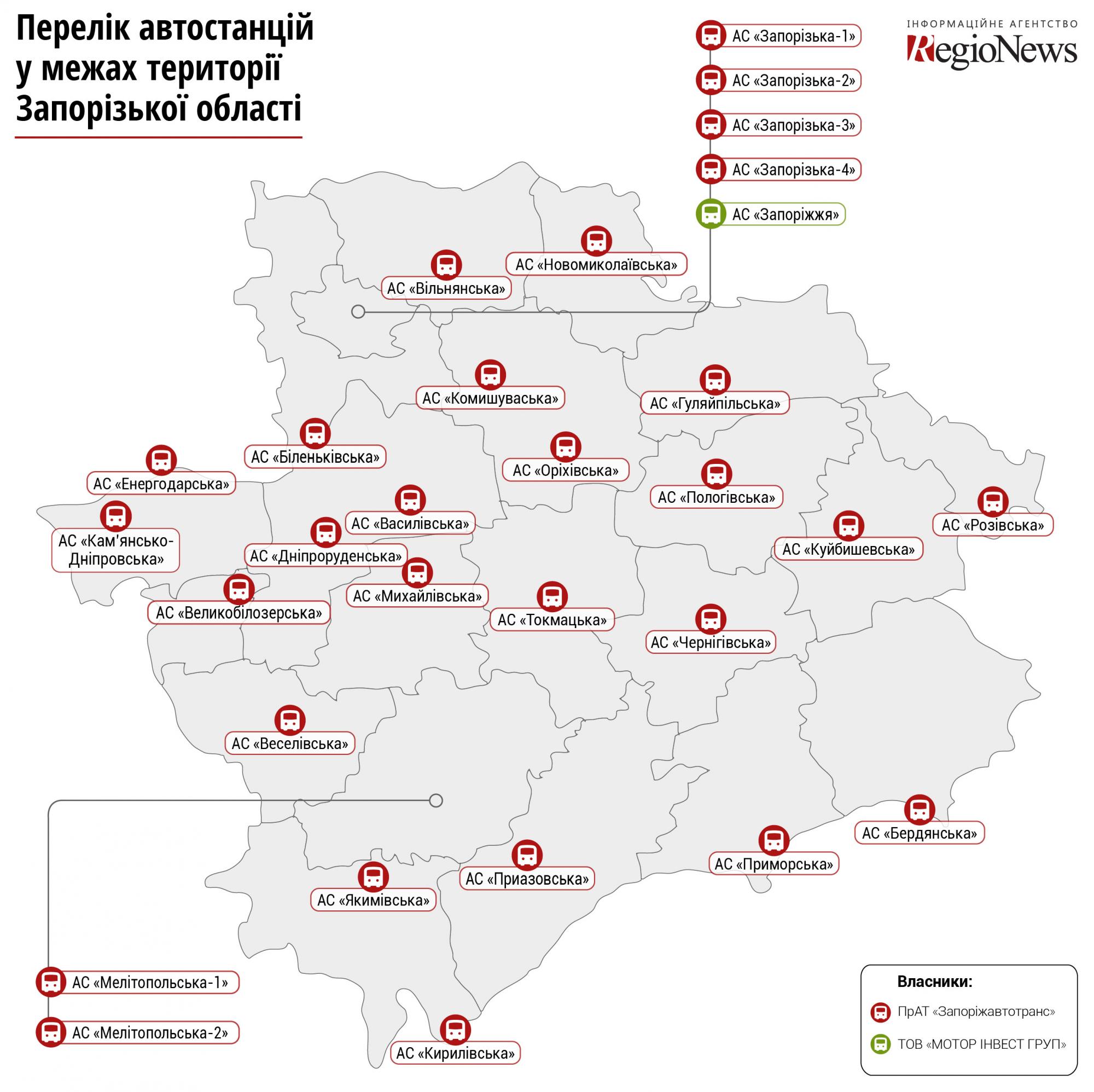 Официально зарегистрированное в достаточно далеком 1997 году ЧАО "Запорожавтотранс" удерживает доминирующее положение на рынке автостанционных услуг региона едва ли не с момента своего создания. Предприятию принадлежит 29 из 30 официальных автовокзалов области. Кроме того, согласно отчету акционерного общества за 2019 год в обособленных структурных подразделений "Запорожавтотранса" принадлежат база отдыха "Бриз" в селе Приморский посад и культурно-развлекательный центр "Сказка" расположенный в селе Беленькое. Кроме того предприятие является членом целого ряда объединений. Среди них есть Ассоциации "Запорожоблавтотранс", которая занимается координацией хозяйственной деятельности предприятий, работающих в отрасли автоперевозок. Также указаны запорожская торгово-промышленная палата - функцией которой является содействие развитию народного хозяйства, создание благоприятных условий для предпринимательской деятельности в регионе, запорожский областной союз ПИП "Потенциал", который представляет и защищает интересы членов союза в экономических, социально-трудовых и других сферах, способствует интеграции и взаимопониманию работодателей Украины. Есть в этом списке Общественный союз "Всеукраинская ассоциация автостанций", которая занимается координацией и объединением усилий в защиту экологических, производственно-технических и социальных интересов автостанций Украины и Всеукраинская ассоциация автомобильных перевозчиков, основной профиль которой это обеспечивать защиту экономических, производственно-технических и социальных интересов перевозчиков Украины.