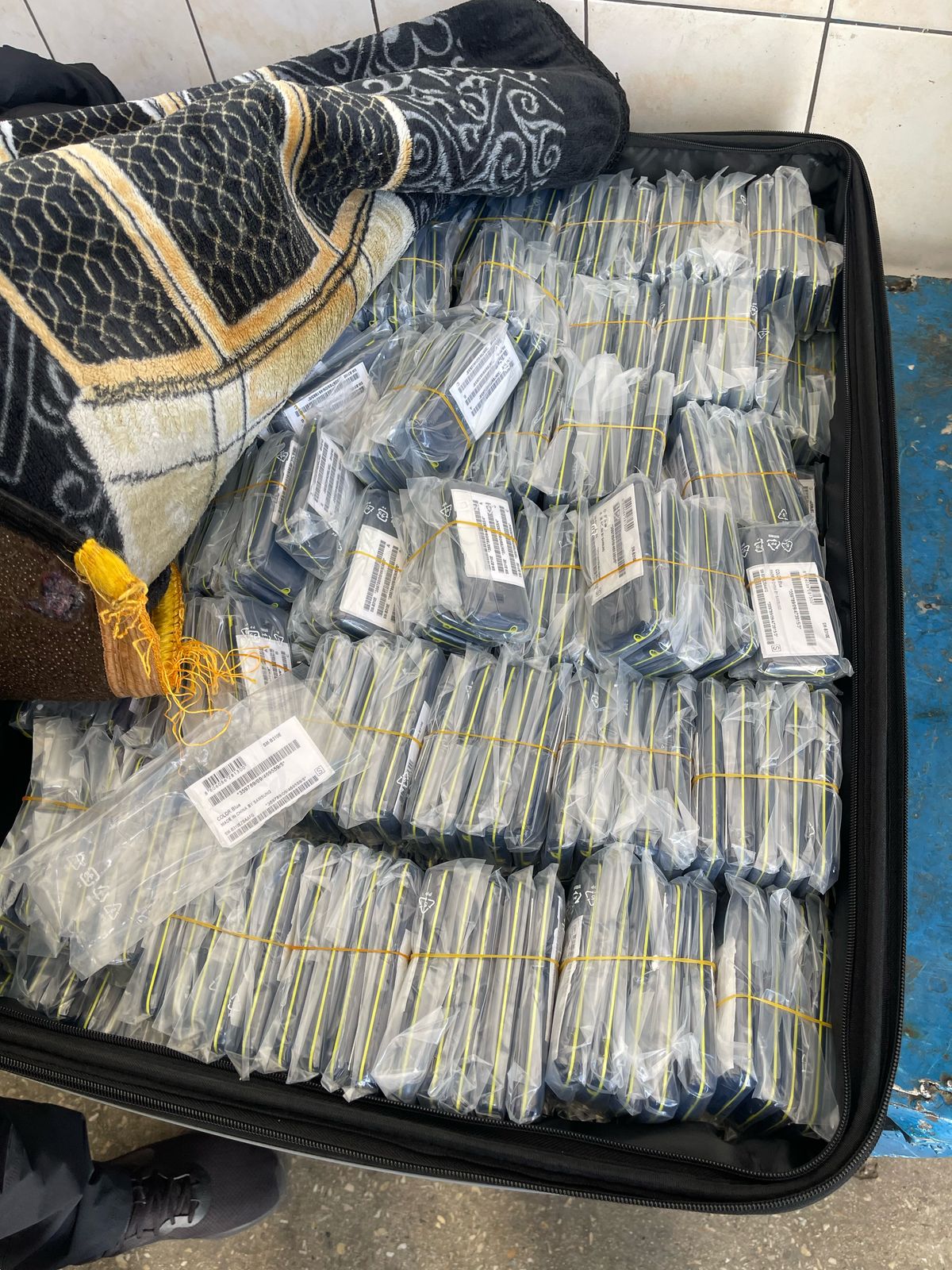 В ходе осмотра автомобиля пограничники совместно с представителями таможни в багажном отделении в чемодане обнаружили мобильные телефоны марки SAMSUNG.