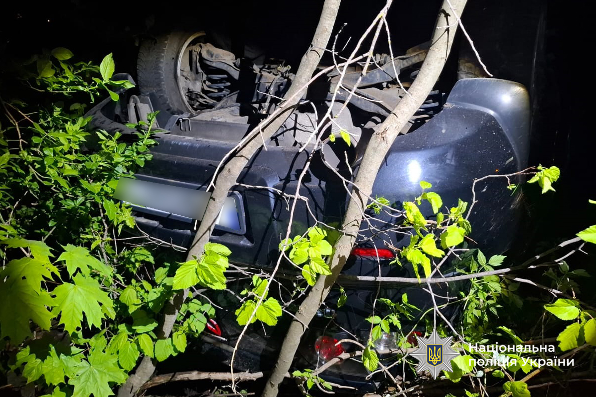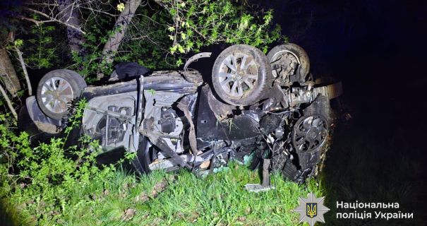 В Черкасской области Mazda въехала в бетонную опору и перевернулась: трое пострадавших