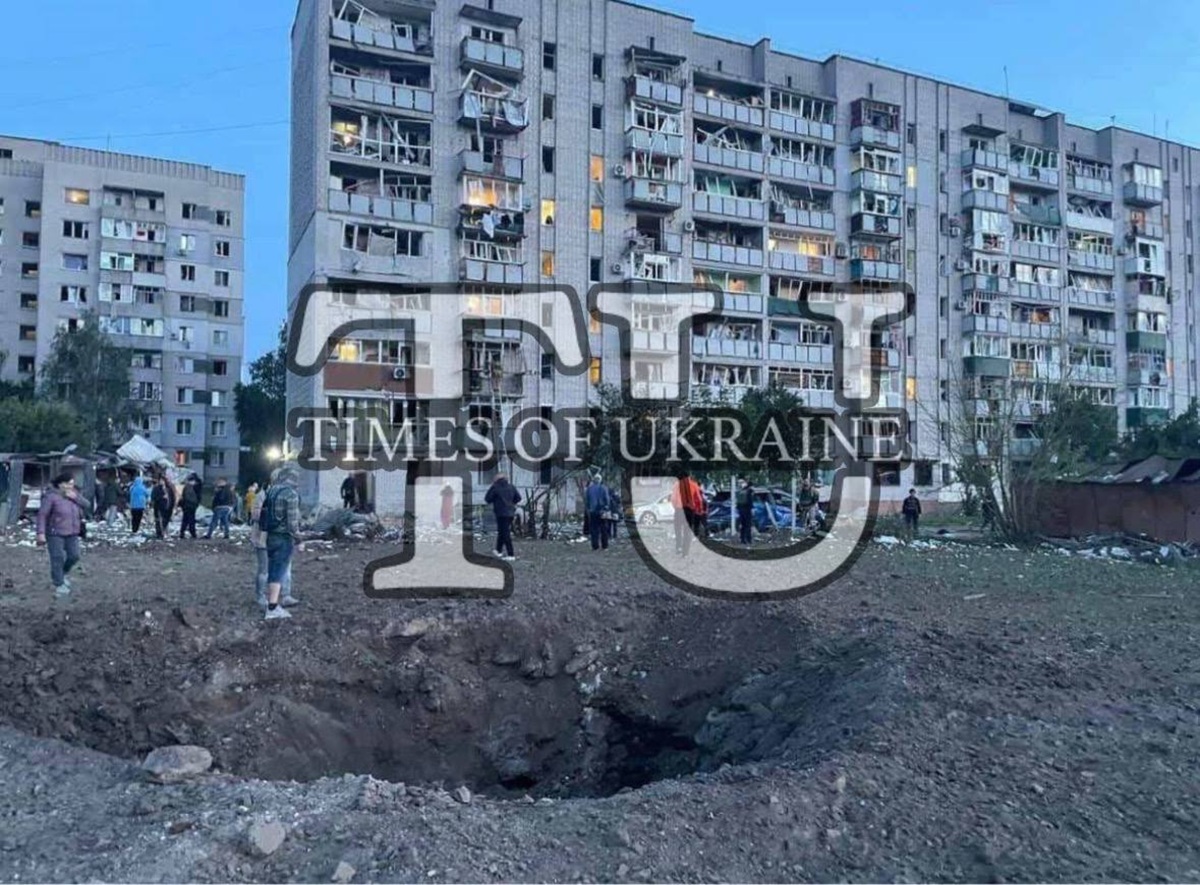 В городе Смела в Черкасской области в результате ракетного удара вблизи многоэтажек образовалась большая воронка. Пострадавших нет, но местные потрясены близостью взрыва к жилищу