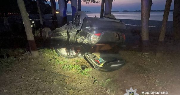 В Черкассах Mercedes протаранил припаркованный автомобиль и опрокинулся - пострадал 44-летний мужчина