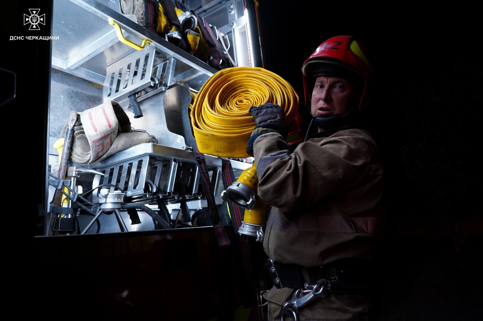 Ночная атака дронами в Черкасской области: спасатели потушили пожар