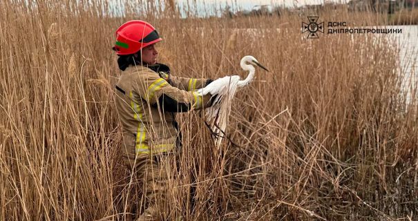 В Кривом Роге спасли цаплю, запутавшуюся в рыбацкой сетке