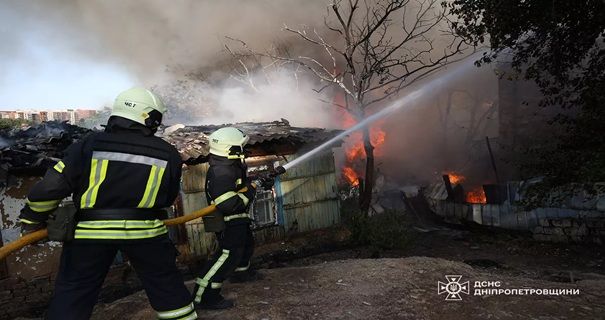 В Днепре произошел масштабный пожар, уничтоживший несколько сооружений в частном секторе города. Площадь возгорания достигла 700 квадратных метров.