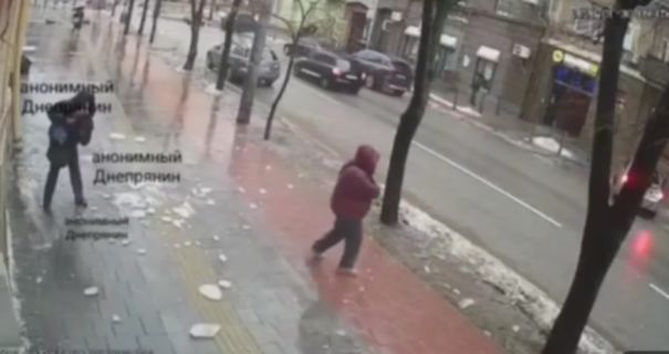 На улице Воскресенской, что в Шевченковском районе Днепра, на голову двум прохожим женщинам упала с крыши дома гигантская сосулька