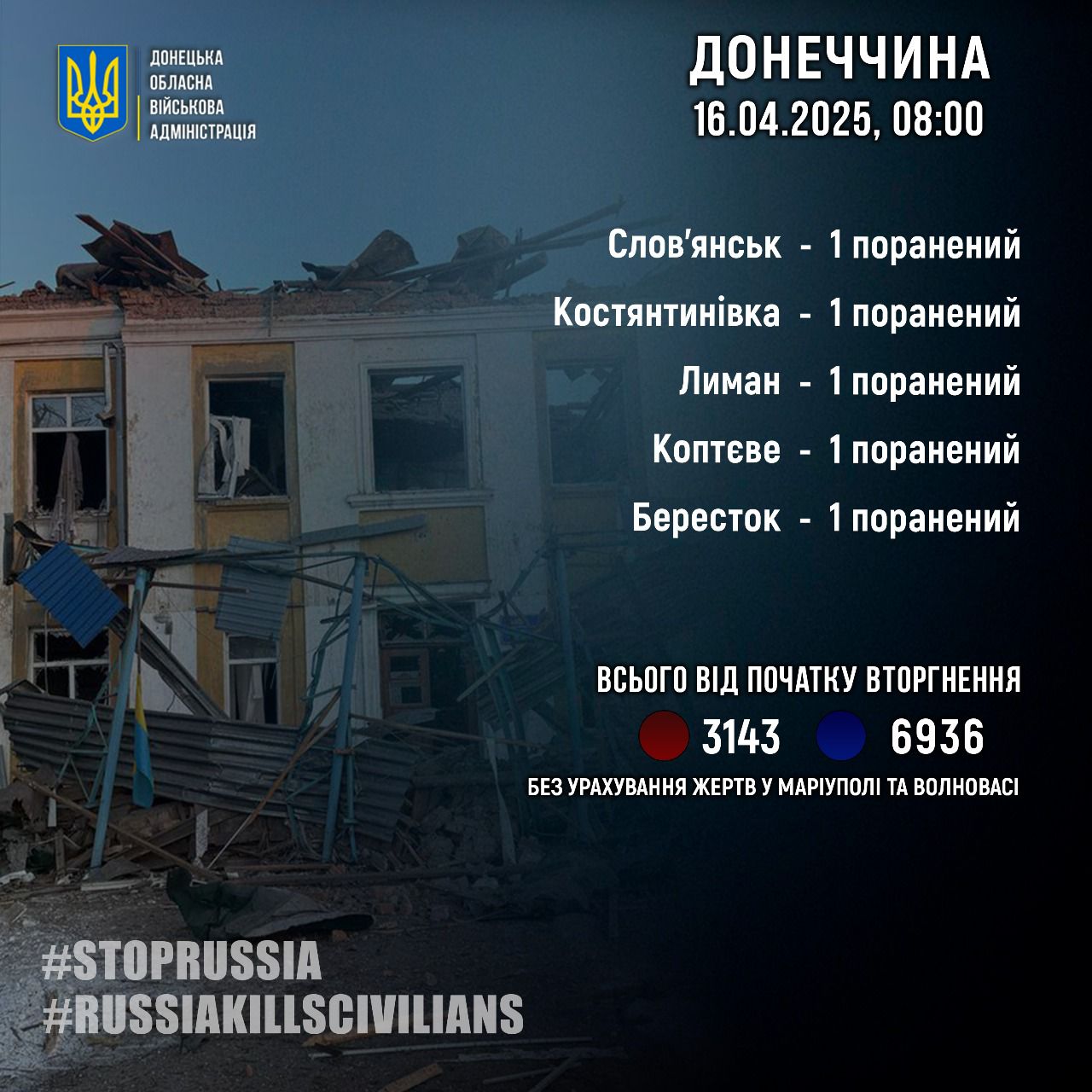 Российские войска минувших суток, 15 апреля, ранили пятерых жителей Донецкой области