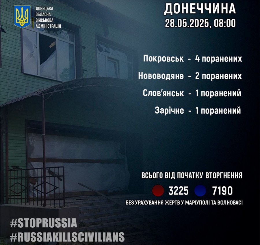 Вчера, 27 мая, в результате вражеских обстрелов Донецкой области ранения получили восемь мирных жителей
