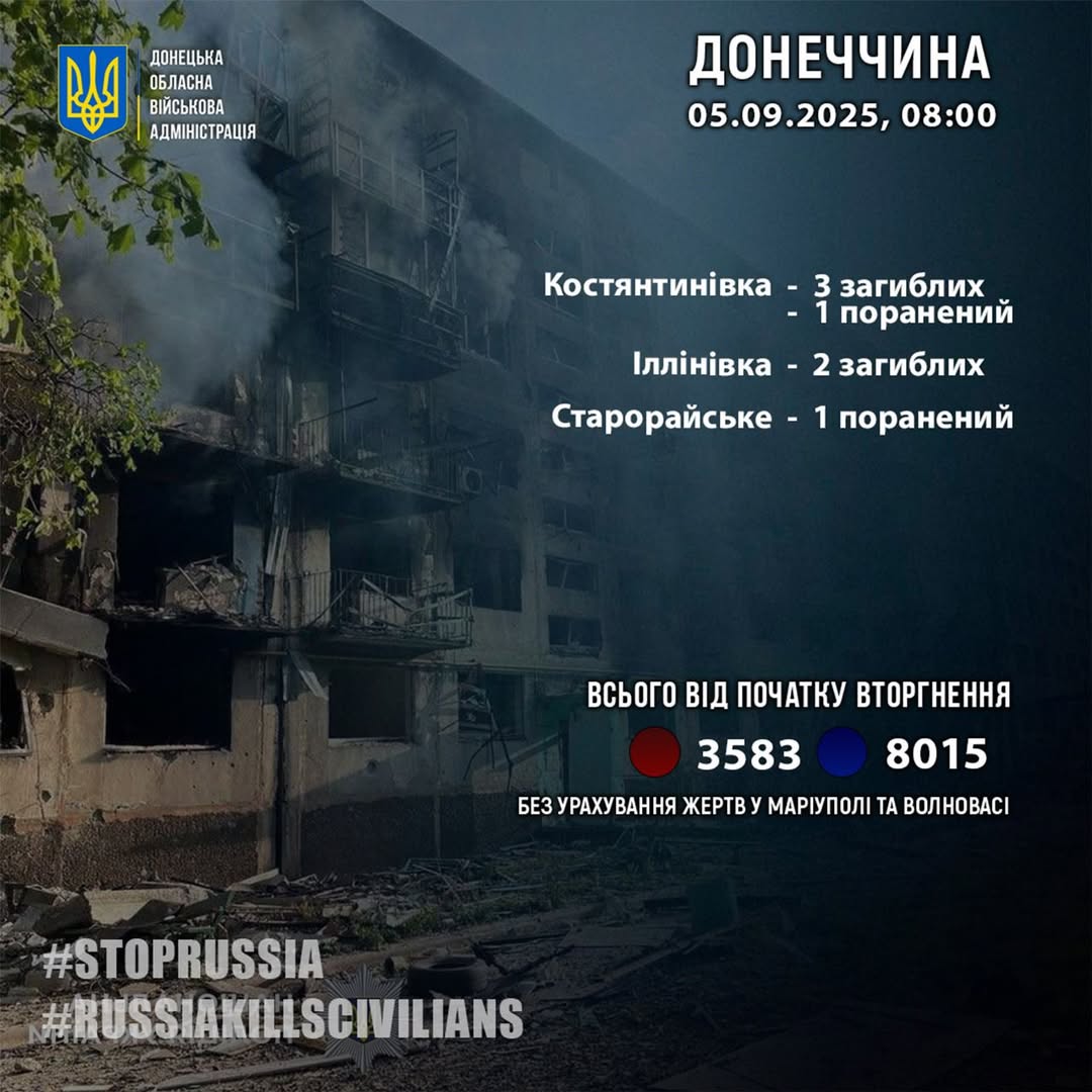 Из-за российских обстрелов три человека погибли в Константиновке, еще два – в Ильиновке.