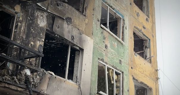 На кадрах видны пустые выбитые окна, разрушенные целые секции многоэтажных домов, обезлюденные улицы, сожженные до отказа автомобили и магазины, заброшенные и одичавшие домашние животные.