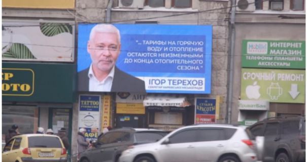 Отметим, что после того, как Терехов стал временно исполняющим обязанности городского головы Харькова, по всему городу были установлены билборды с его портретом.