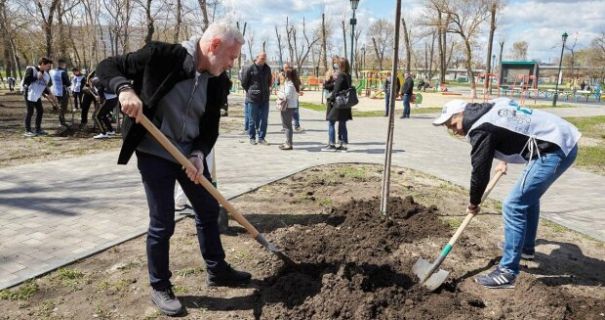 Исполняющий обязанности мэра Харькова Игорь Терехов пиарится на высадке деревьев, но делает это там, где ранее им же возглавляемая мэрия деревья вырубила