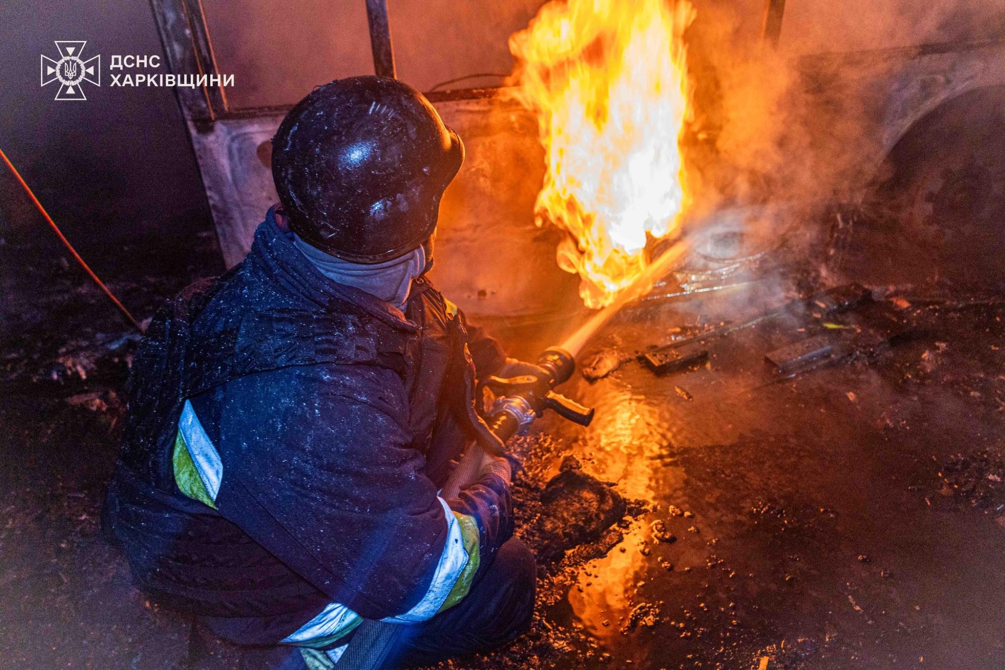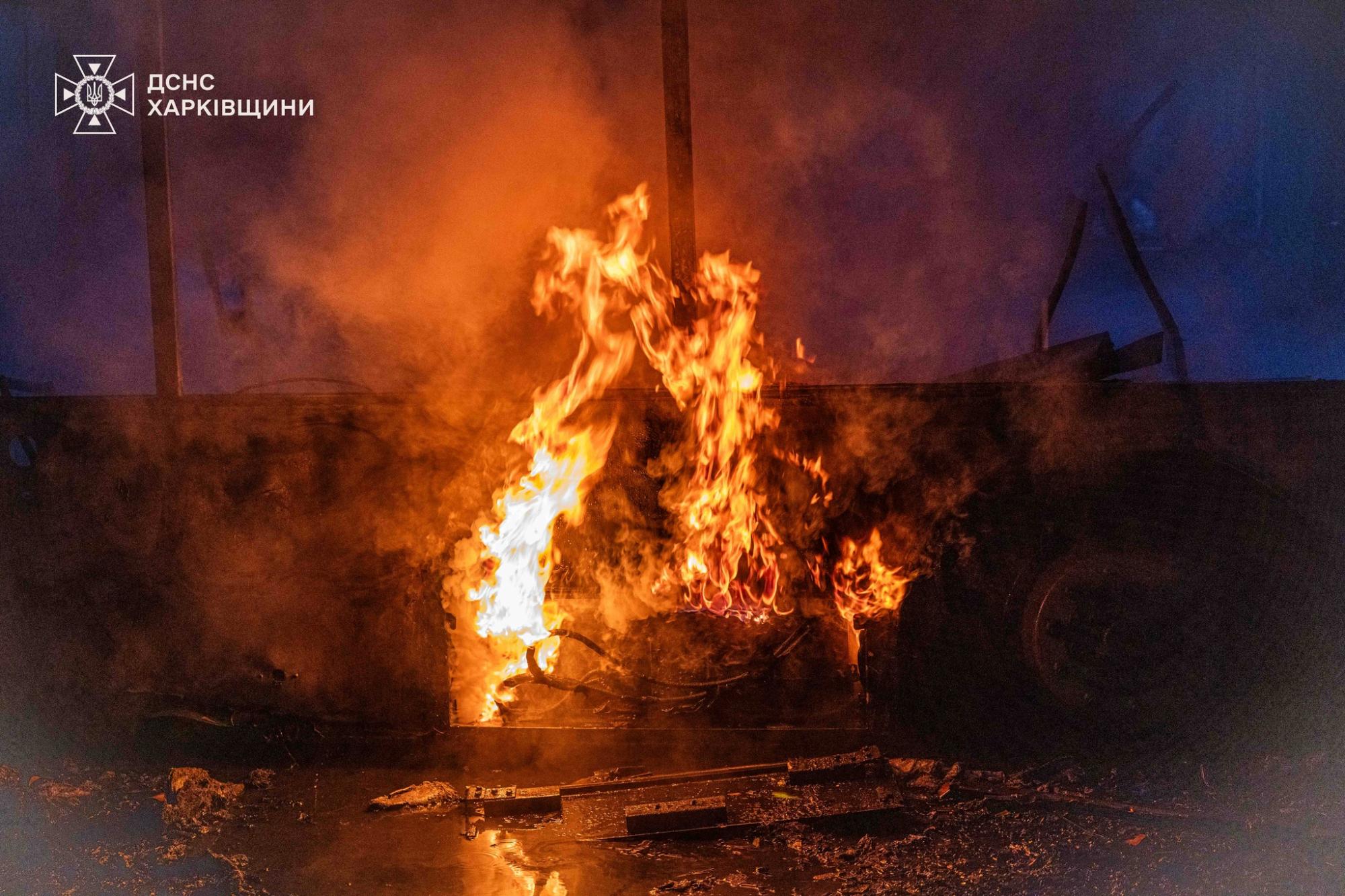 В ГСЧС показали, как тушили пожар после ударов дронов по Харькову