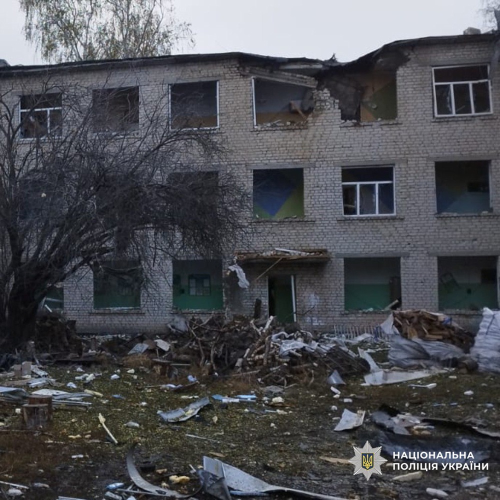 Ночью дрон попал в здание учебного заведения в Чугуеве. Из-за удара выбиты окна и двери, поврежден фасад и кровля. На месте возник пожар. Также пострадали соседние многоэтажные дома и легковые автомобили. В результате инцидента травмированы пять человек: 12-летняя девочка, две женщины 59 и 78 лет и мужчины 54 и 69 лет. Все пострадавшие получили медицинскую помощь из-за острой стрессовой реакции.