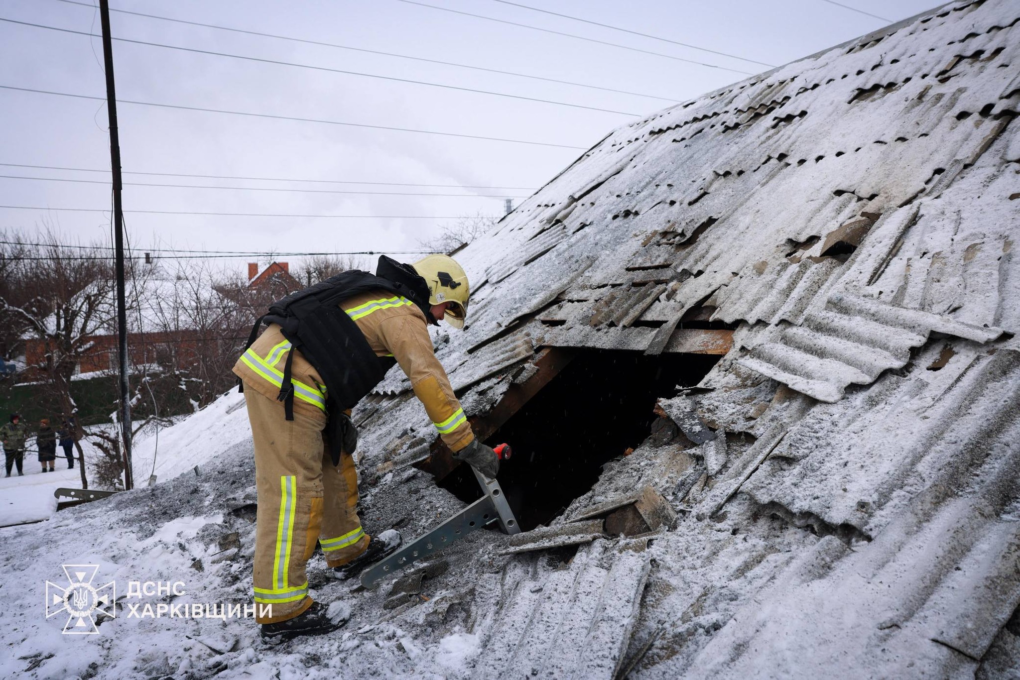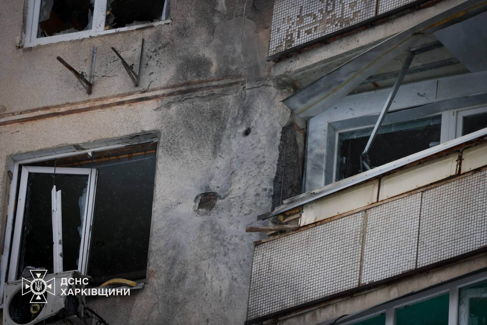 Одно из попаданий произошло в крышу частного жилого дома в Немышлянском районе, еще одно – в стену 10 этажа жилой 12-этажки в Киевском районе.