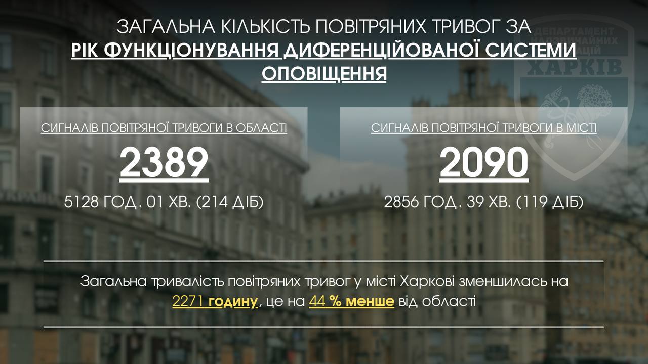 По его словам, благодаря внедрению новой модели общая продолжительность воздушных тревог в Харькове уменьшилась на 2271 час или на 44% по сравнению с показателями по области.