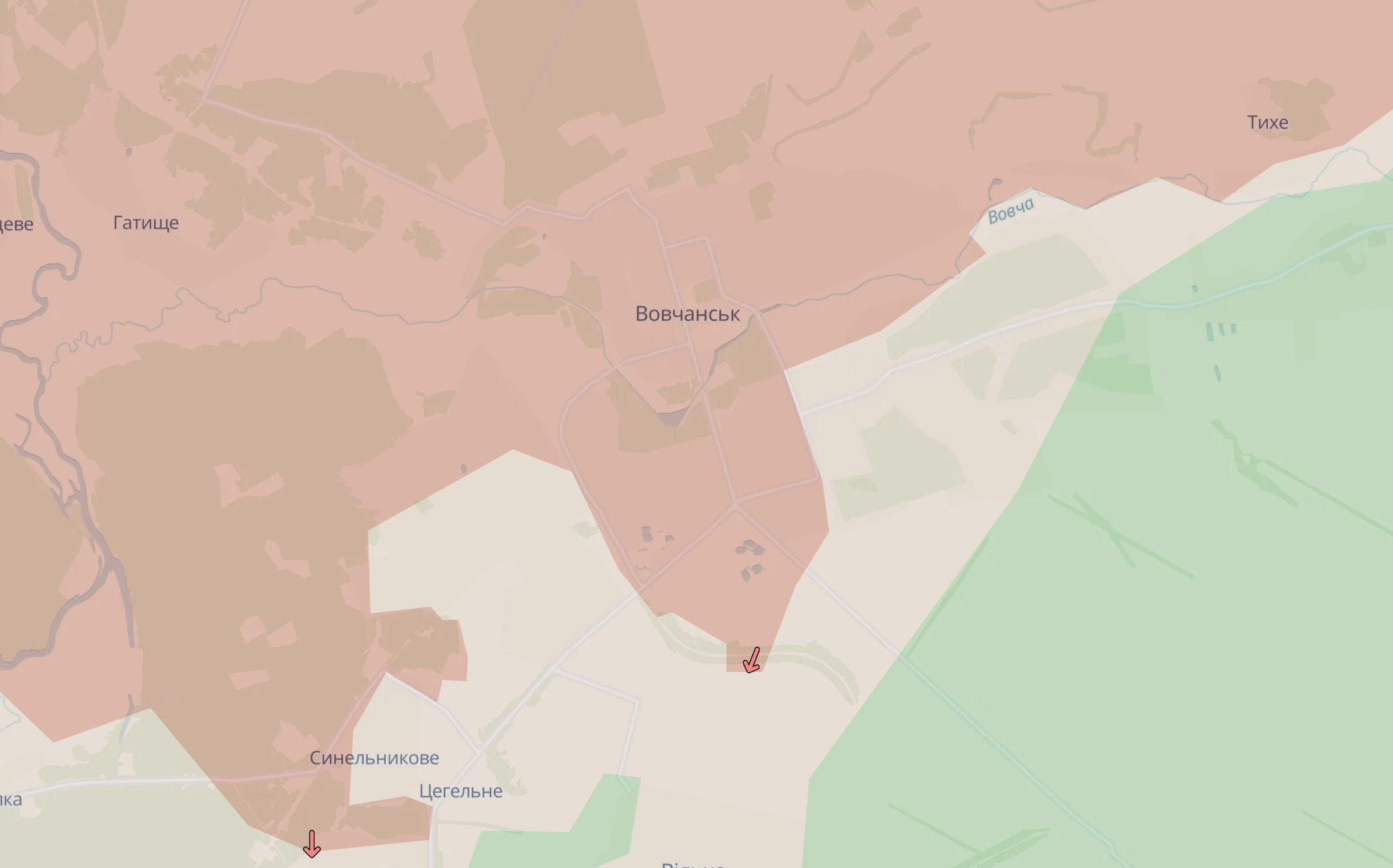 Продвижение российских окупантов за минувшие сутки зафиксировано в городе Волчанск и селе Синьковка Харьковской области, а также в селе Зализнянское Донецкой области.