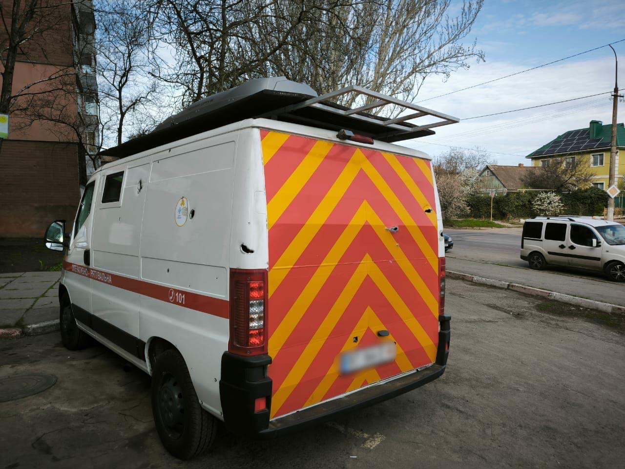 Во время повторного обстрела спасатели были вынуждены перейти в укрытие. Поврежден оперативно-спасательный автомобиль.