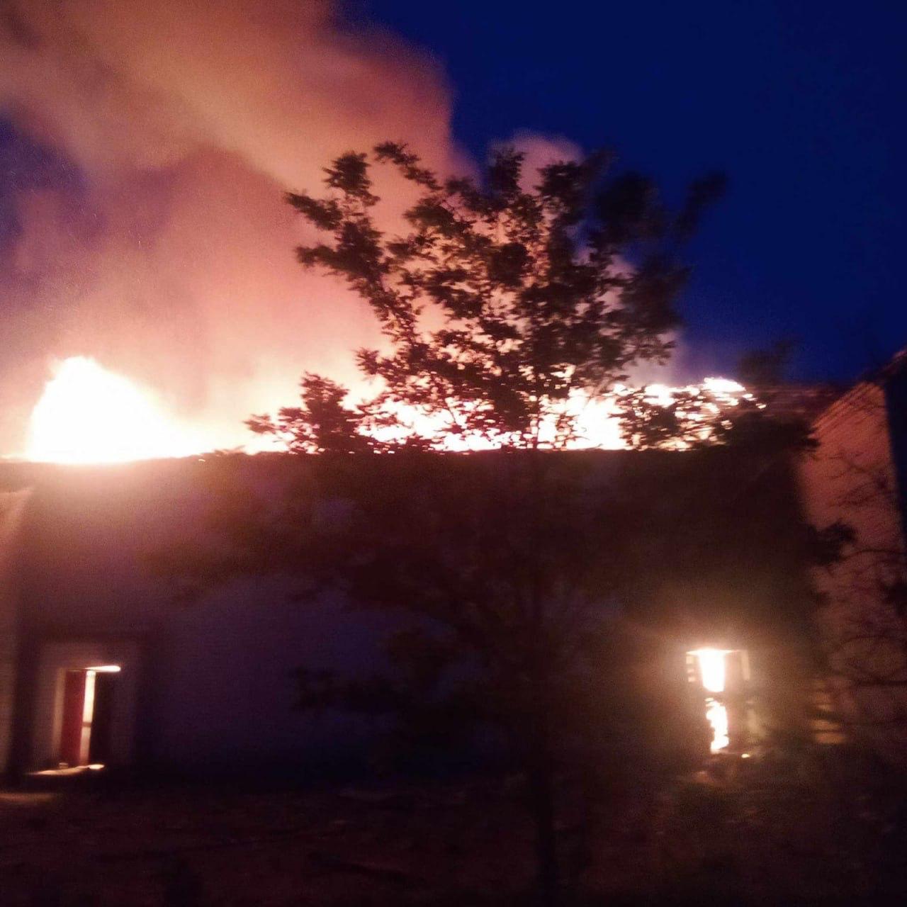 В результате попадания беспилотника местный дом культуры сгорел дотла. К счастью, люди не пострадали.