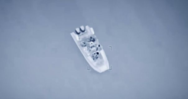 Отмечается, что удар стал возможным благодаря лазерной подсветке с дрона, который также зафиксировал момент уничтожения военного катера вместе с его экипажем.