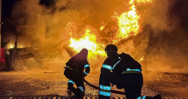 Как рассказали спасатели, российский дрон попал в грузовик с цистерной. В результате произошел взрыв и пожар на территории АЗС. Спасатели смогли потушить пламя и не допустить распространения огня на здание и оборудование станции.