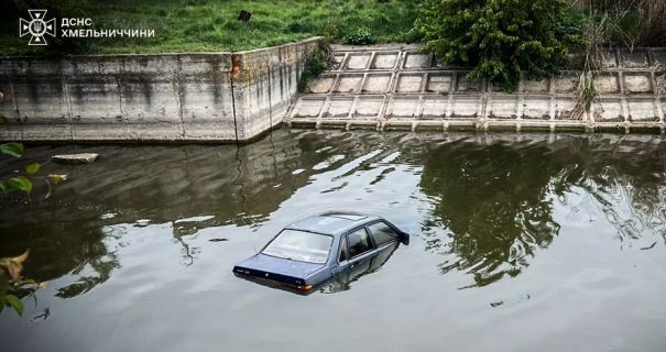 Инцидент произошел утром 6 мая в микрорайоне Дубово в Хмельницком. Спасатели вытащили машину из водоема