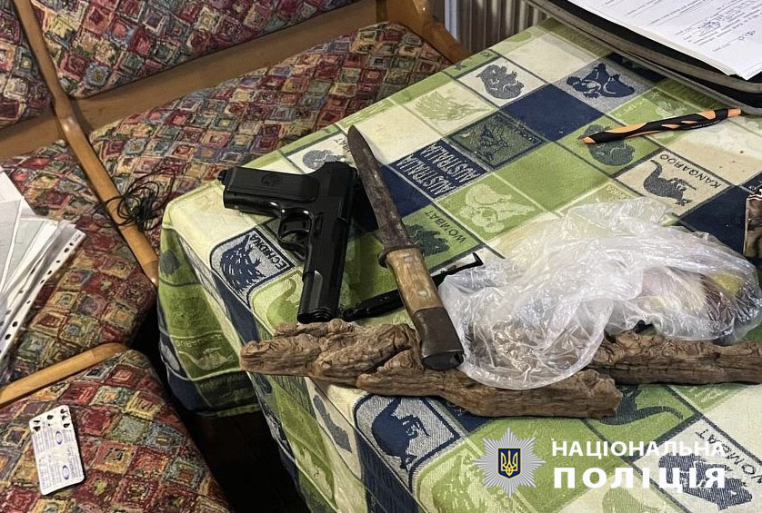 Полицейские задержали злоумышленника и изъяли у него предмет, похожий на гранату, запал типа УЗРГМ, нож и пистолет.