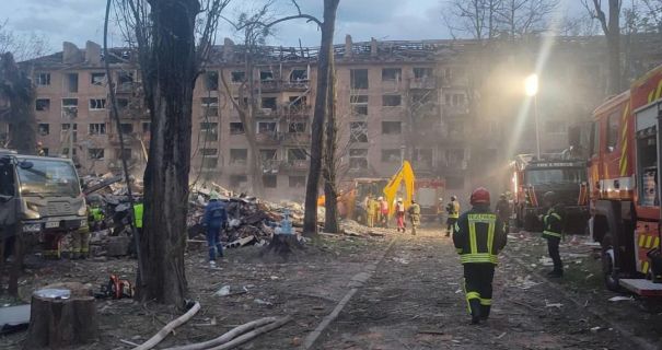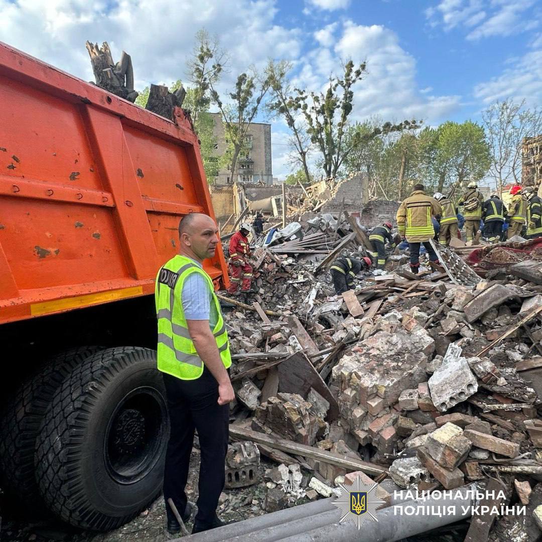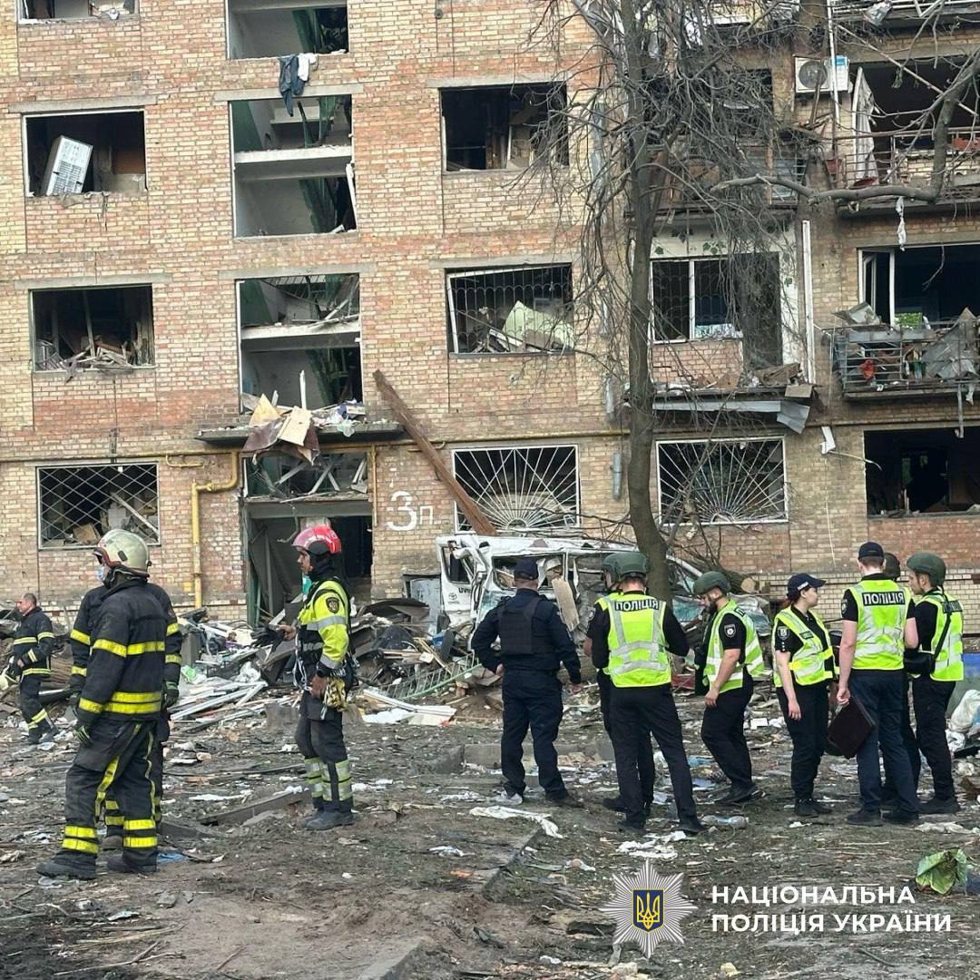 В Святошинском районе в результате попадания ракеты разрушен жилой дом и повреждены соседние.