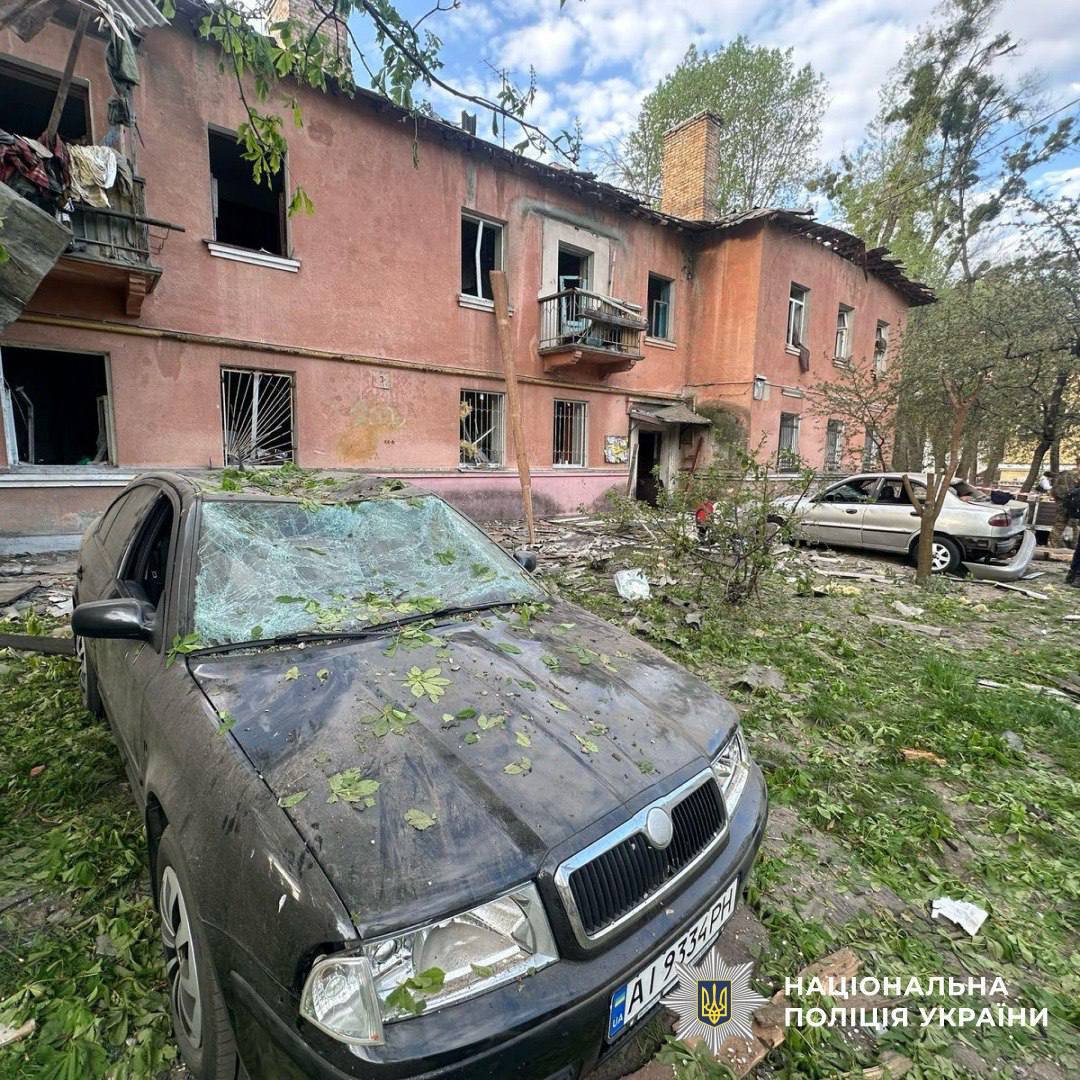 Зафиксированы разрушения в Святошинском, Голосеевском, Шевченковском, Печерском и Соломенском районах столицы. Повреждены жилые и нежилые здания, помещения питания, транспортные средства, станция метро.