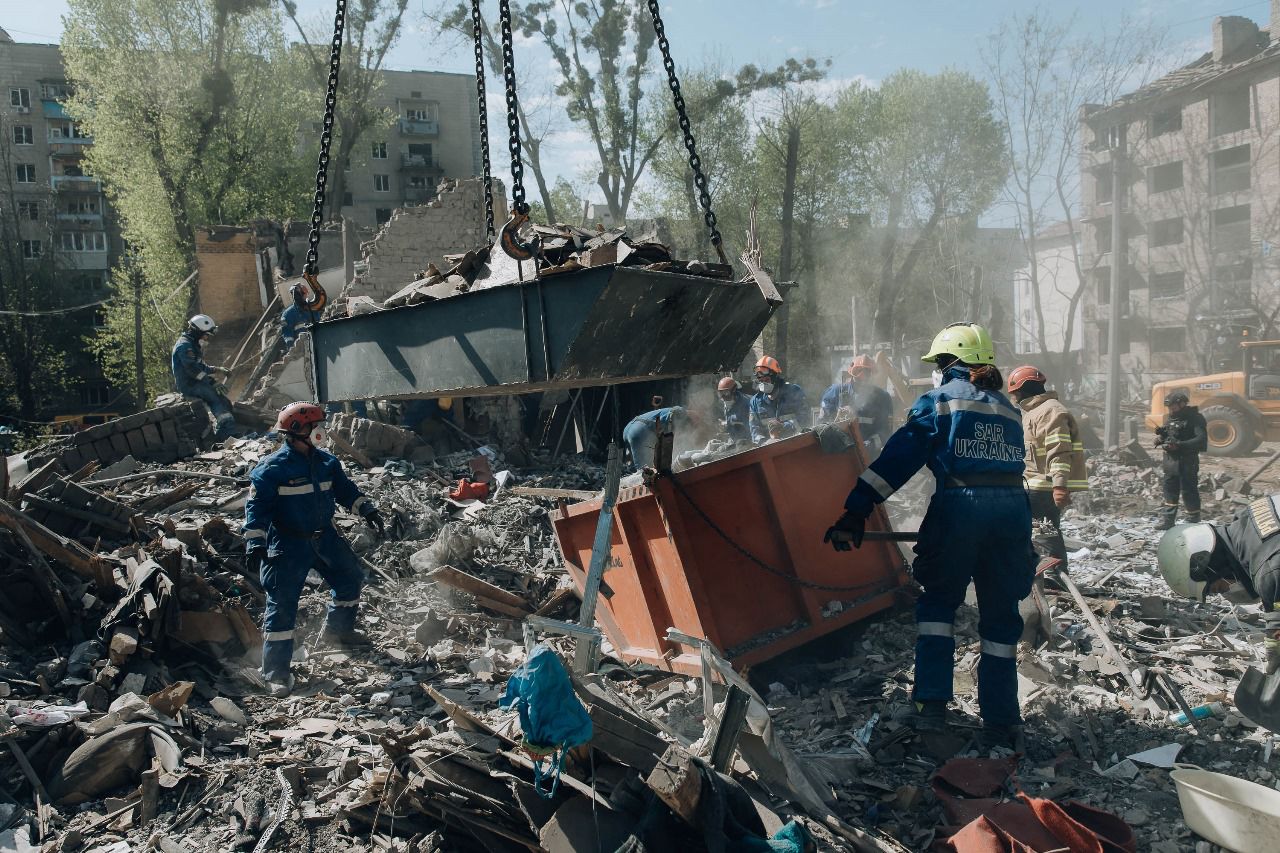Президент отметил, что в Киеве все еще идет разбор завалов после российского ракетного удара Спасатели и другие экстренные службы работают, пока не выяснят судьбу каждого человека.