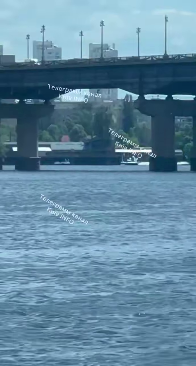 На опубликованных в сети кадрах видно, как останки моста падают в Днепр.