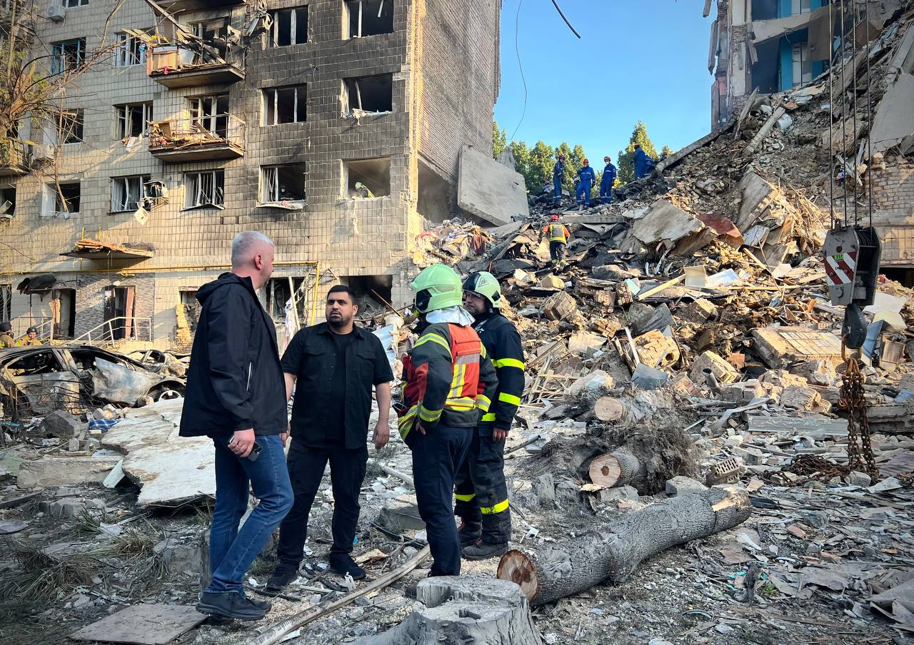 В Соломенском районе разрушен подъезд жилого дома. Там сейчас работают спасатели, разбирают завалы.