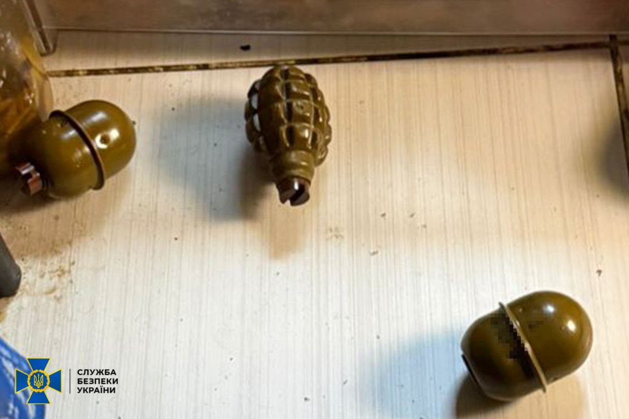 Во время обысков у задержанного изъяли самодельную бомбу и составляющие ее изготовления, мобильный телефон с доказательствами сотрудничества с РФ и боевые гранаты.