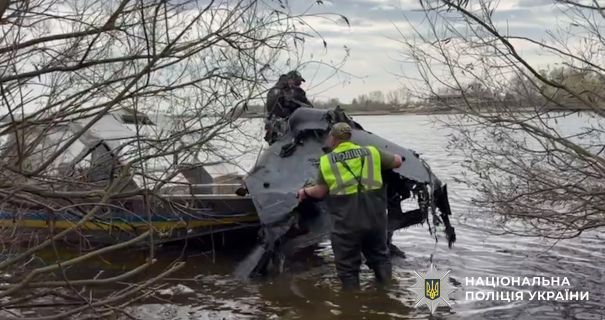 В Голосеевском районе Киева полицейские достали из реки беспилотник, который россияне запустили на столицу во время массированной атаки 16 апреля