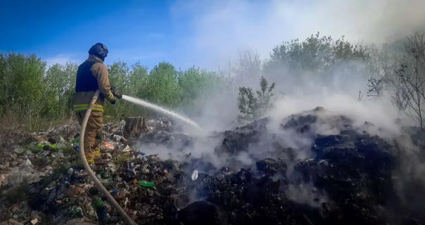 На улице Киевский путь горел мусор на несанкционированной свалке.