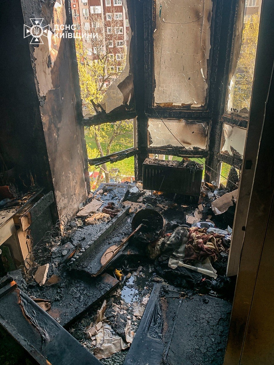 Под Киевом чрезвычайники вытащили 11-летнего мальчика из горящей многоэтажки