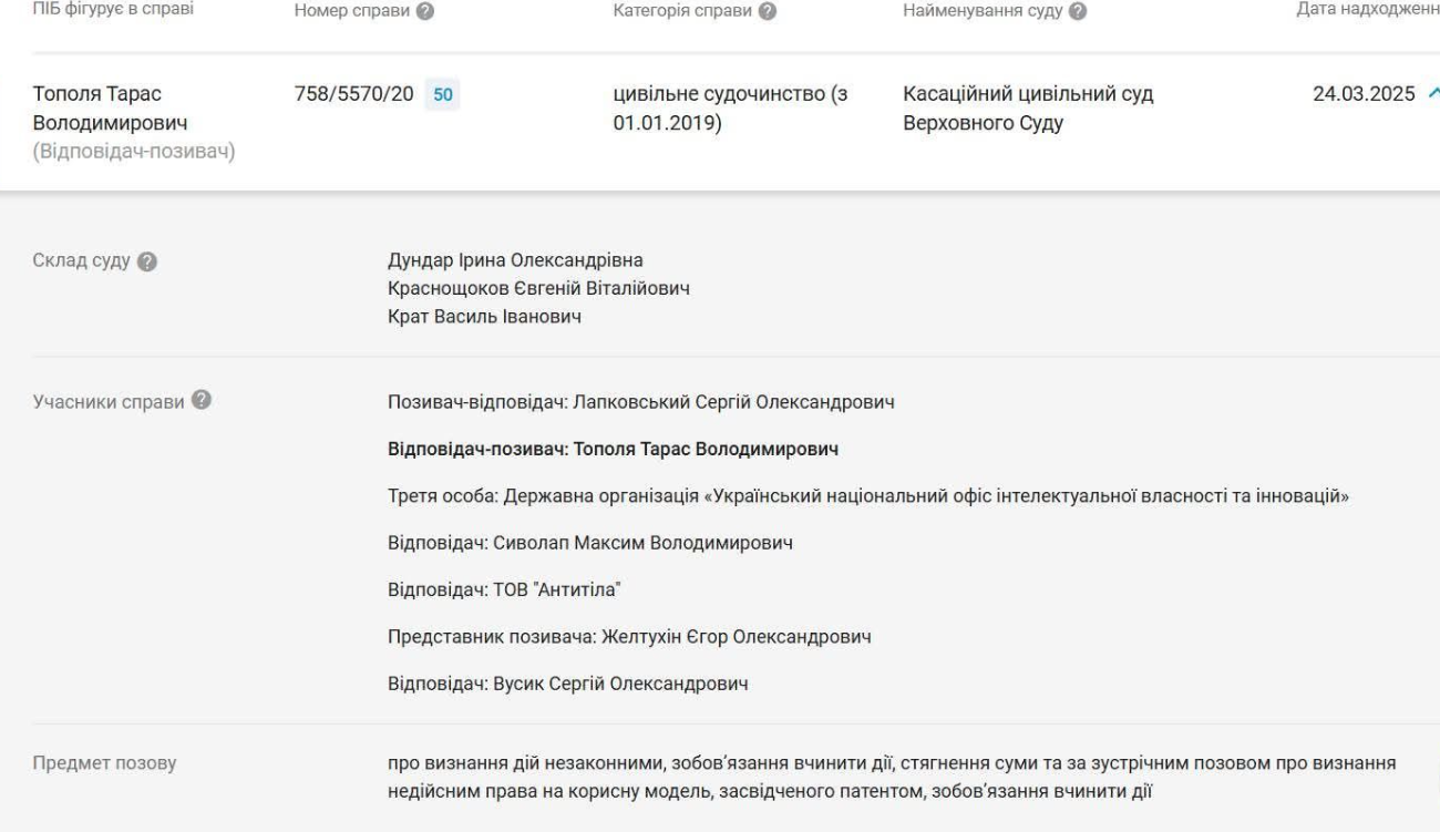 Марьяна Безугла также отметила, что уже несколько лет продолжается судебный спор по более чем 1 млн грн, которые пытаются отсудить в Тополи и группе "Антитела". Рассмотрение дела ожидается в Верховном суде.