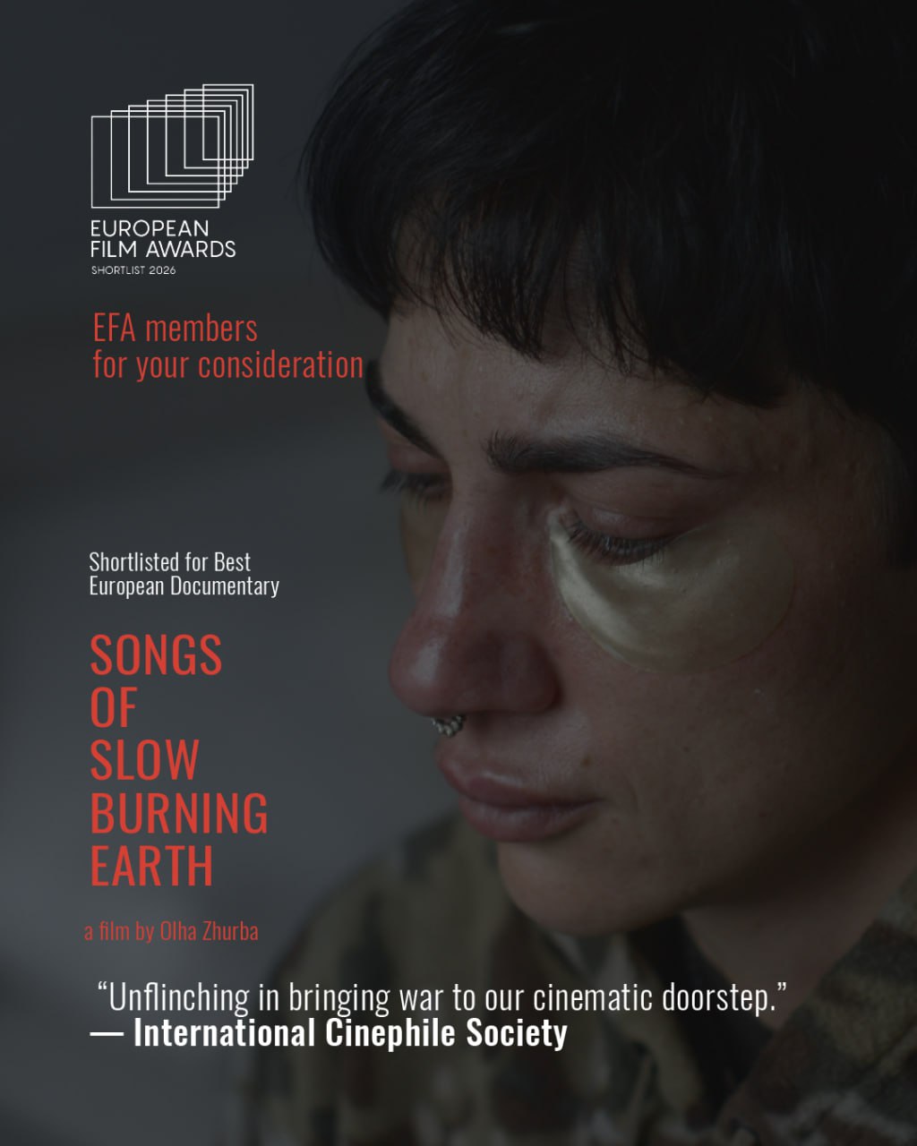 Документальная лента "Песни медленно горящей земли" Ольги Журбы вошел в краткий список European Film Awards. Фильм представят в категории "Лучший документальный фильм"