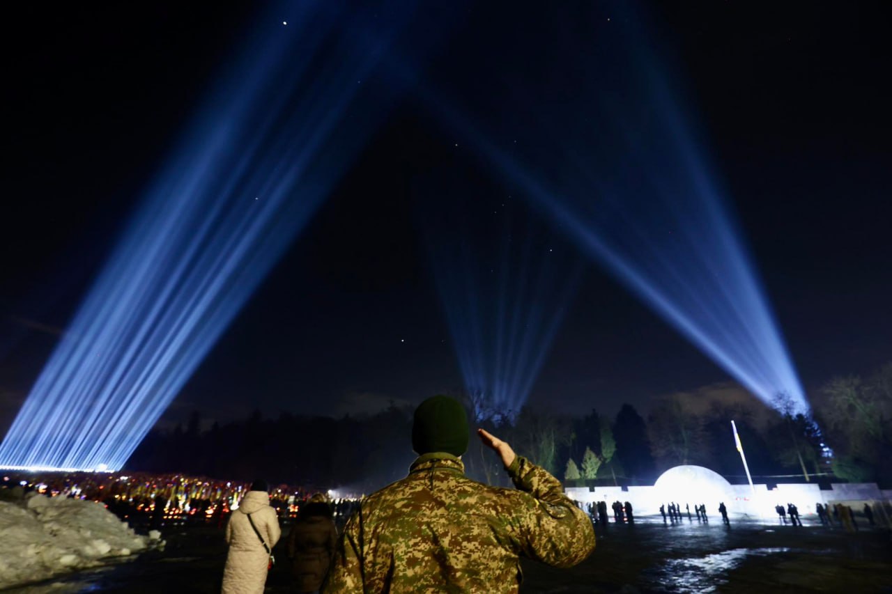 В канун четвертой годовщины российского вторжения над могилами павших украинских Защитников и Защитниц засветили «Луч памяти»