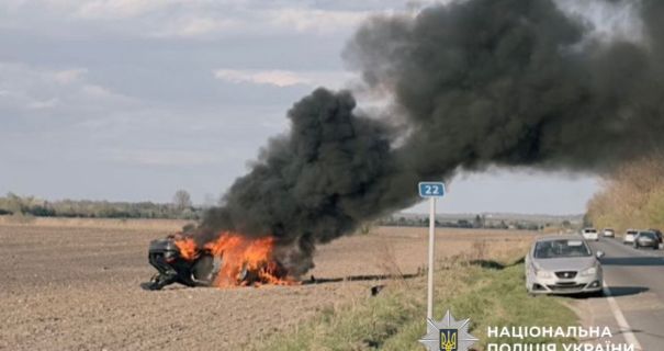 На Львовщине Audi вылетел с дороги, опрокинулся и сгорел