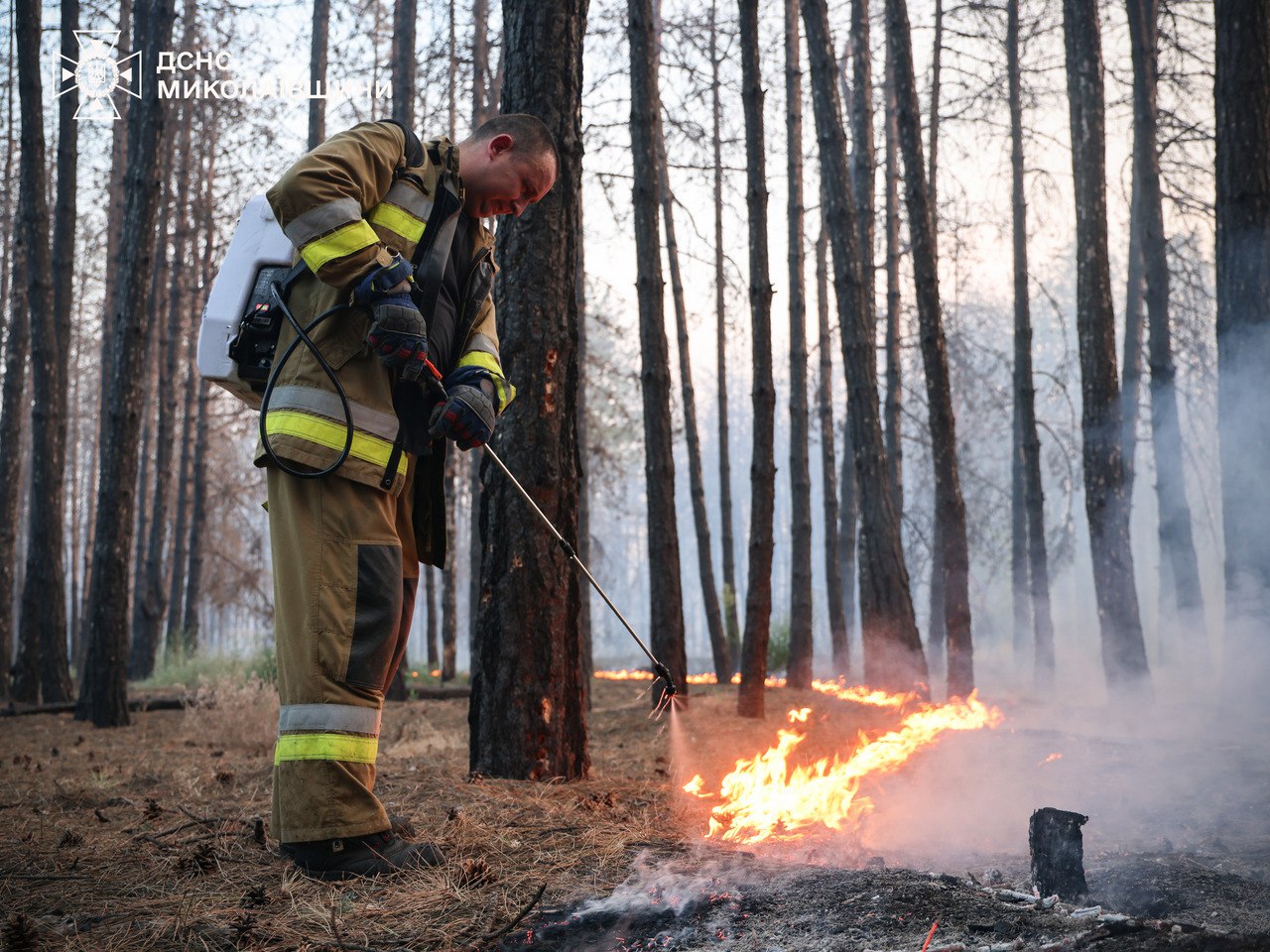 На Николаевщине почти сутки тушат масштабный пожар в Андреевском лесном урочище