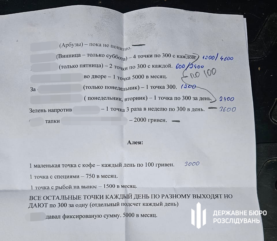 Ежемесячная сумма "дани" составляла в среднем 9000 гривен с одного предпринимателя и определялась индивидуально. В общей сложности за месяц с почти 30 предпринимателей правоохранители получали около 220 тысяч гривен, которые делили между собой.