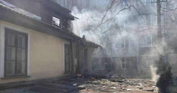 В результате атаки возник пожар в двухэтажном доме и возгорание крыши пристройки. Частично поврежден второй этаж дома. В соседних домах выбито остекление.