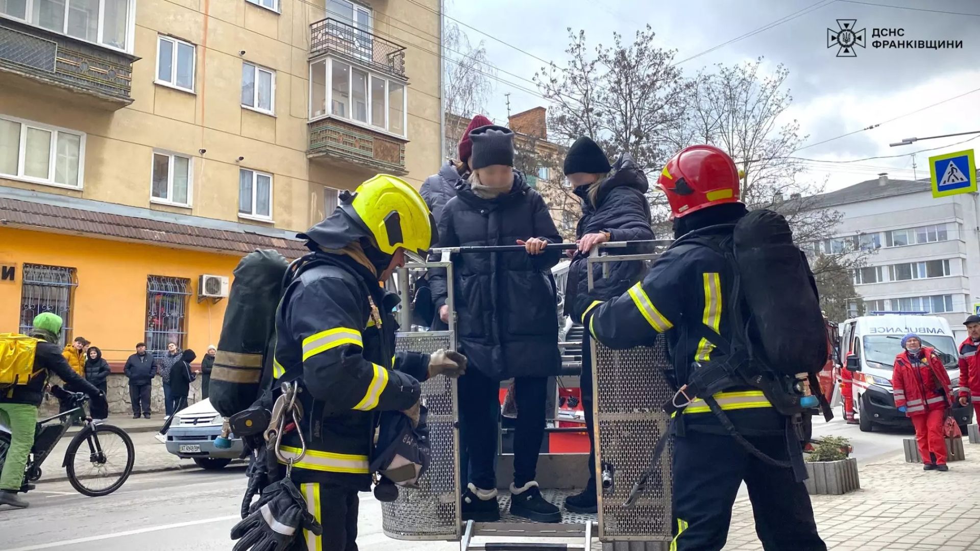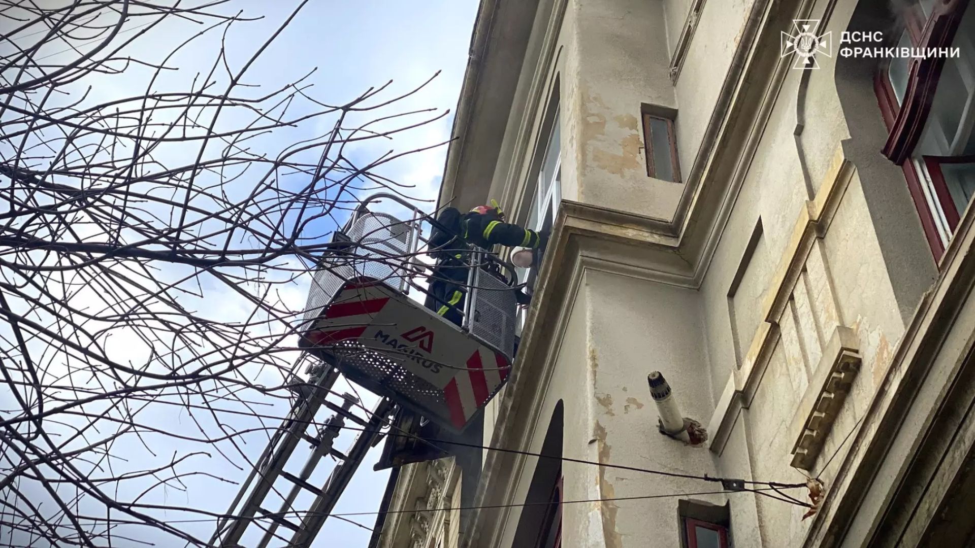 В Ивано-Франковске 20 февраля произошел пожар в трехэтажном доме. Спасатели с лестницей спасали людей