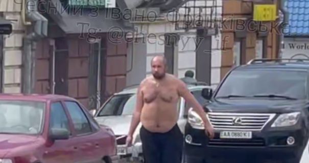 На кадрах в соцсетях видно, что мужчина с обнаженным торсом и ведром в руке ходит посреди автомобилей. При этом он зачерпывает из ведра фекалии и бросает их в машины. Известно, что полиция уже задержала его.