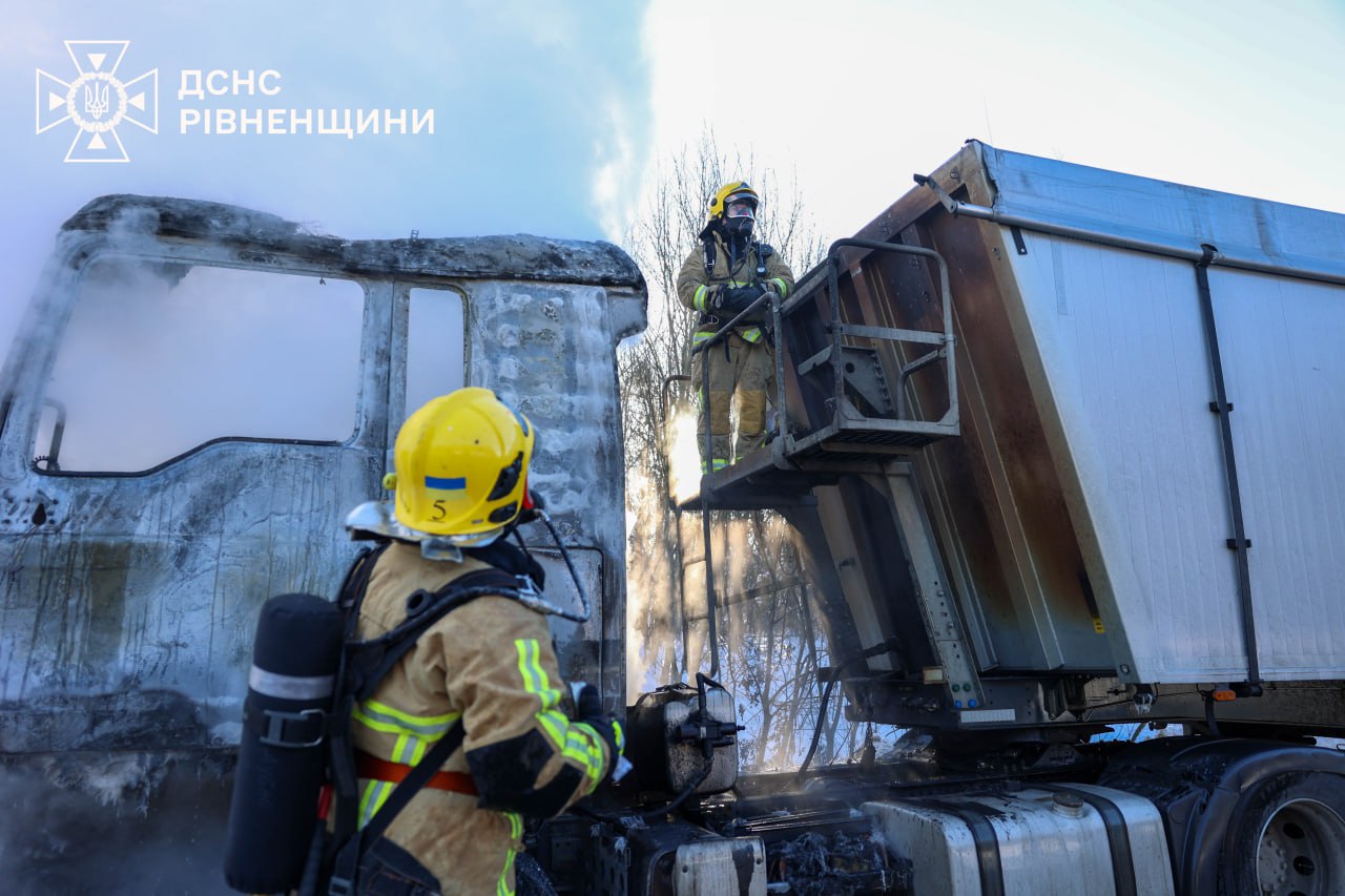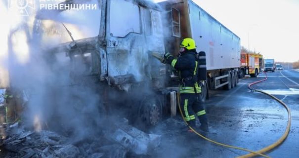 Сегодня, 21 января, на автодороге М-06 "Киев-Чоп" вблизи села Зеленый Гай в Дубенском районе Ровенской области загорелся грузовой автомобиль