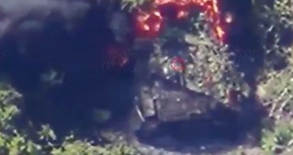 Операторы дронов пограничной бригады «Стальная граница» заметили вражескую бронемашину, которую оккупанты готовили для штурма наших позиций.