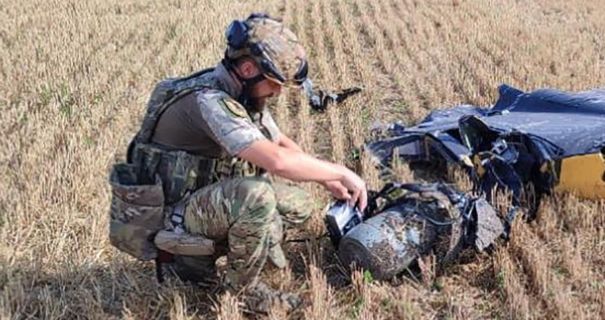 После одной из ночных атак врага в поле обнаружили беспилотник, который упал и не взорвался. На место прибыли специалисты, которые изъяли 50-килограммовую осколочно-фугасно-зажигательную часть, обезвредили и вывезли в безопасное место для уничтожения.