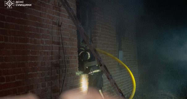 В результате вражеской атаки произошло возгорание двухэтажного нежилого здания. Параллельно с тушением пожара спасатели обследовали территорию, по которой был нанесен удар.