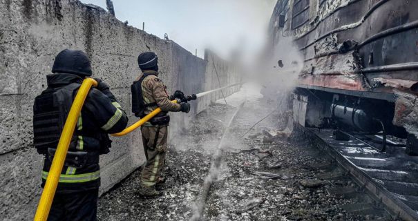 В результате вражеской атаки загорелись помещения депо и вагон.