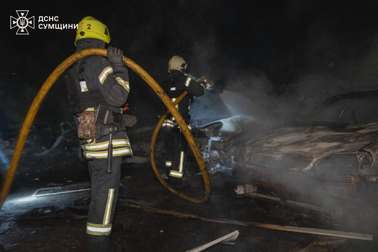 По информации ГСЧС, попадания зафиксированы на 7-ми разных локациях. Из-за угрозы повторных атак спасатели несколько раз приостанавливали работы и отходили в безопасное место. Все очаги горения ликвидированы.